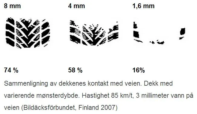 Selv om mønster dybden er god, svekkes gummien over tid. Etter omtrent seks år bør dekkene byttes ut, da aldring gjør dem hardere og mindre effektive på vinterføre.